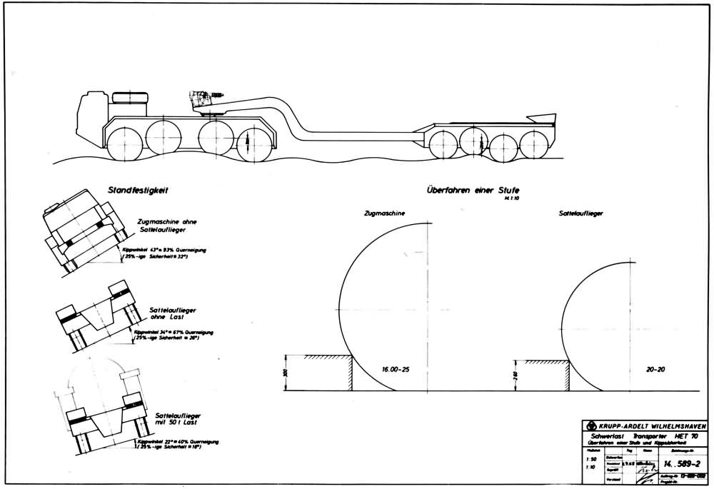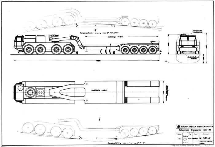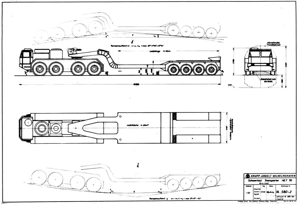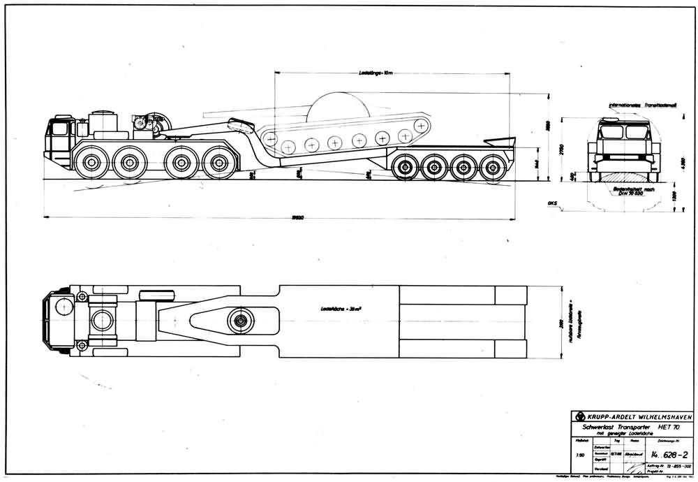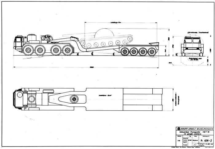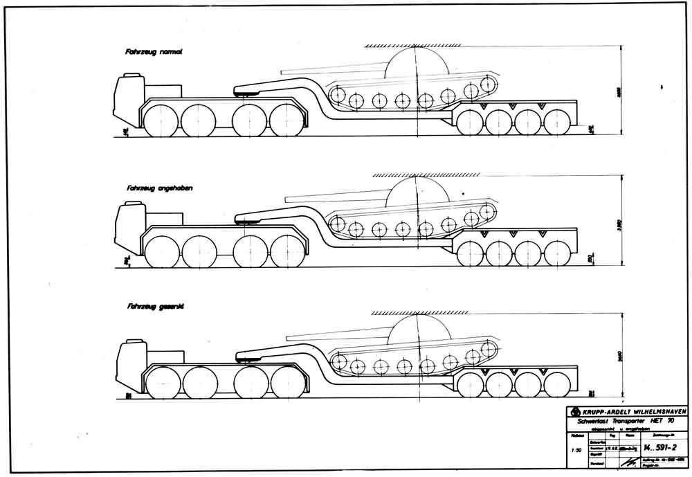 Die Weiterentwicklung der HET 70 Aufgabe bestand vor allem darin, statt bisher 40 t, erstgenannt 50 t, dann 47,5 t Aufladelast unter Beibehaltung aller Bedingungen unterzubringen.