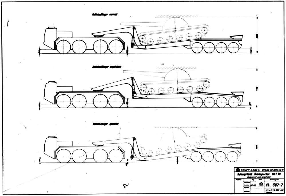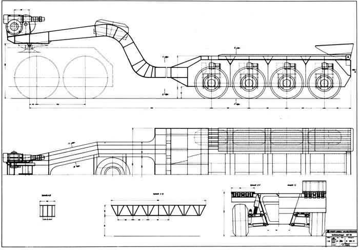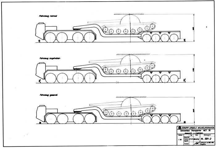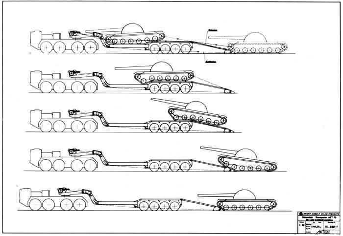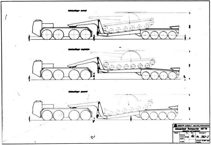 Gewichtserhöhung des Panzers machte die 4. Achse notwendig und weiterhin die Verlagerung des Sattelpunktes auf der Zugmaschine nach vorn. (Zugmaschine wird dadurch mehr zum Tragen der Last herangezogen.)