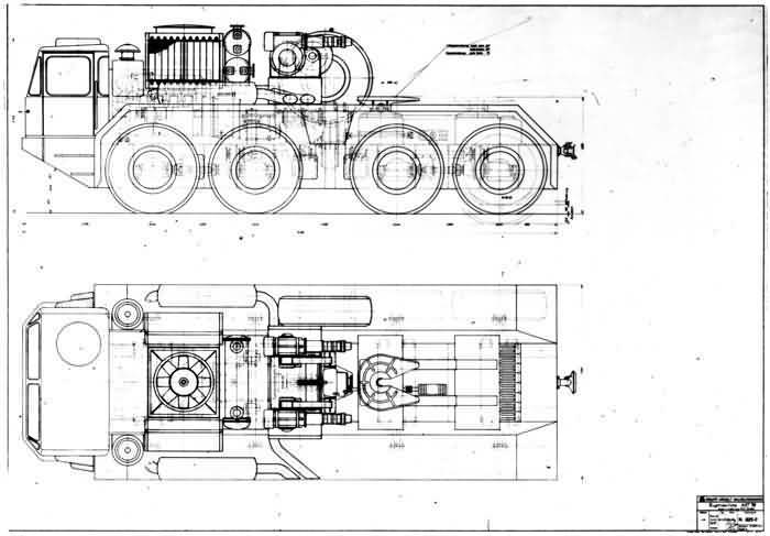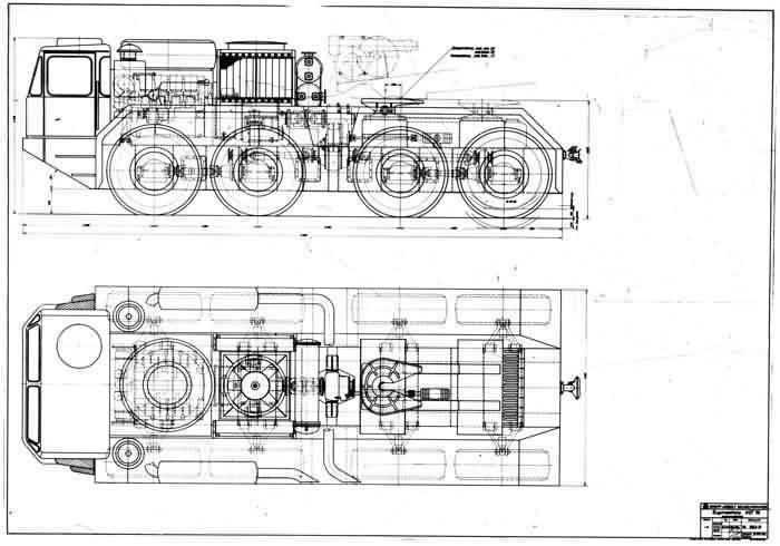 doppelten Querlenker aufgehängt. Anschluß für Hydraulikfedern. Querkästen für Sattelkupplung öldicht geschweißt für Hydrauliköl. Brennstofftank seitlich - günstig für Schwerpunkt und Betankung. Fahrerhaus für 3 - 4 Personen. Falls Panzerbesatzung mit untergebracht werden muß, Vorbau um ca. 500 mm notwendig.