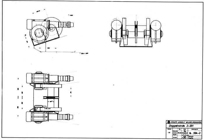 Mit Angaben der Hauptabmessungen Bild 1 + 2, mit Hinweis auf Anordnung der Winde auf dem Sattelhals.