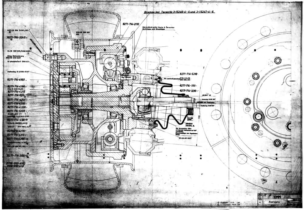 Vorgelege und Achsmittelgetriebe liefert die Firma Rheinstahl. Es sind Getriebe mit Ölumlaufschmierung, d.h. mit je einer Ölpumpe, so daß die bei tiefen Kältegraden hohen Plantschverluste durch steifes Öl entfallen. Die Wartung dieser Getriebe ist bei Verwendung von alterungsbeständigen Ölen äußerst gering. Versuche mit diesen Ölen haben bei gleichartigen Getrieben eine Laufzeit von 260.000 km ergeben, ohne daß eine Qualitätsminderung des Öles festgestellt werden konnte. Diese Untersuchung