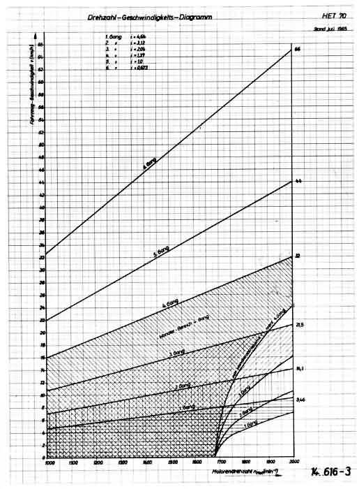 Auf schlechten Landstraßen (Grobpflaster) Mit fR= 0,035 läßt sich die Höchstgeschwindigkeit mit der vorhandenen Leistung nicht mehr erreichen. Es muß der 5. Gang benutzt werden.