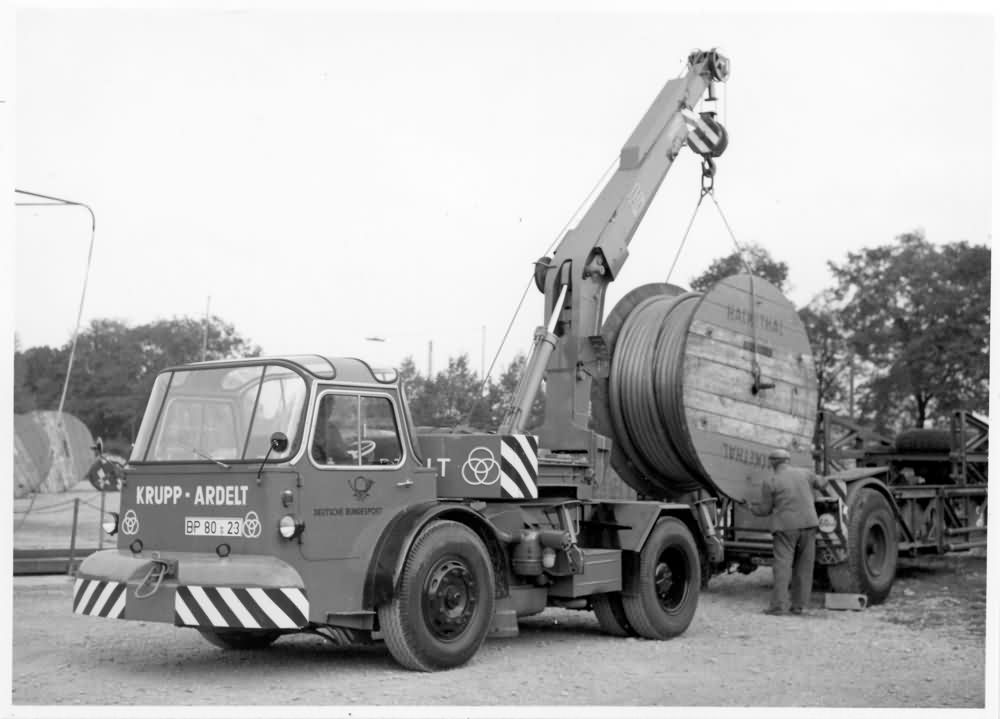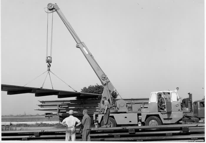 Mit diesem Foto kann ich Ihnen dasselbe Gerät bei der Verlegung der KRUPP Stahlflachstraße in Butzbach zeigen.