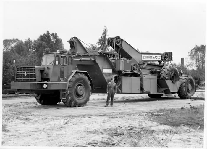 Mit diesem Bild möchten wir Ihnen eine weitere Entwicklung des 6 t Gerätes, erhöht auf 12 t Traglast mit Allradantrieb, demonstrieren. Auch dieses Fahrzeug wird z.Z. mit gutem Erfolg eingesetzt. Wir haben die beiden vorgenannten Typen in Serie aufgelegt.